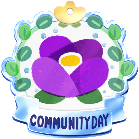 | Summary | Blue Camellia Community Day badge from Pikmin Bloom. |