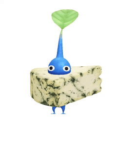 | Summary | An animation of a Blue Pikmin with a piece of cheese from Pikmin Bloom. |