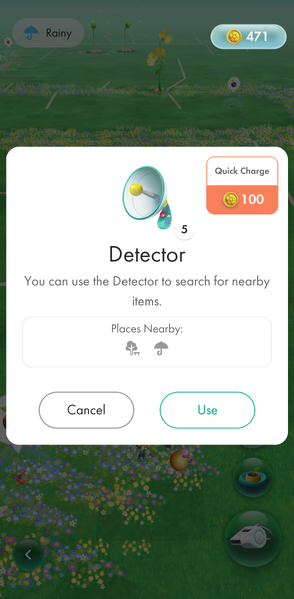 | Summary | A screenshot of the detector menu in Pikmin Bloom. |