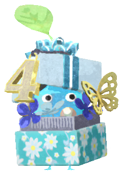 | Summary | Lifelog artwork of an Ice Special Decor Pikmin with 4th Anniversary Flower Box decor from Pikmin Bloom. |