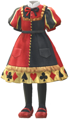 | Summary | "Playing Card Apron Dress (Red)" Mii costume in Pikmin Bloom. |