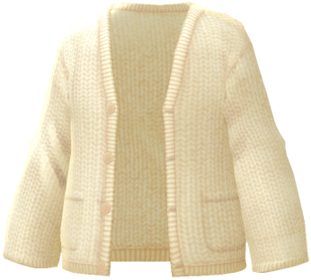 | Summary | "Knit Cardigan (Off-White)" Mii outerwear part in Pikmin Bloom. |