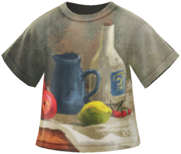 | Summary | "Masterpiece Print T-shirt (Fruit and Pitcher)" Mii top part in Pikmin Bloom. |