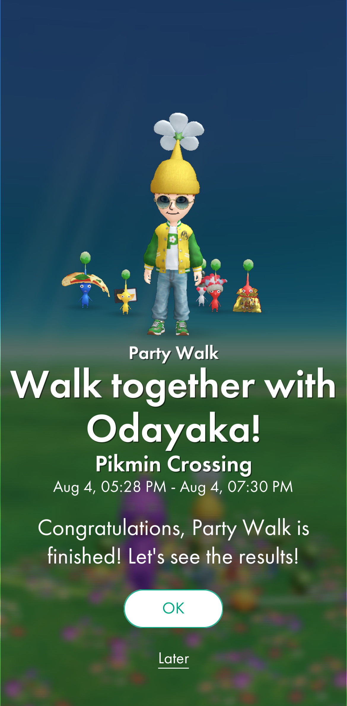 | Summary | The screen that appears once a Party Walk that has been registered for concludes from Pikmin Bloom. |