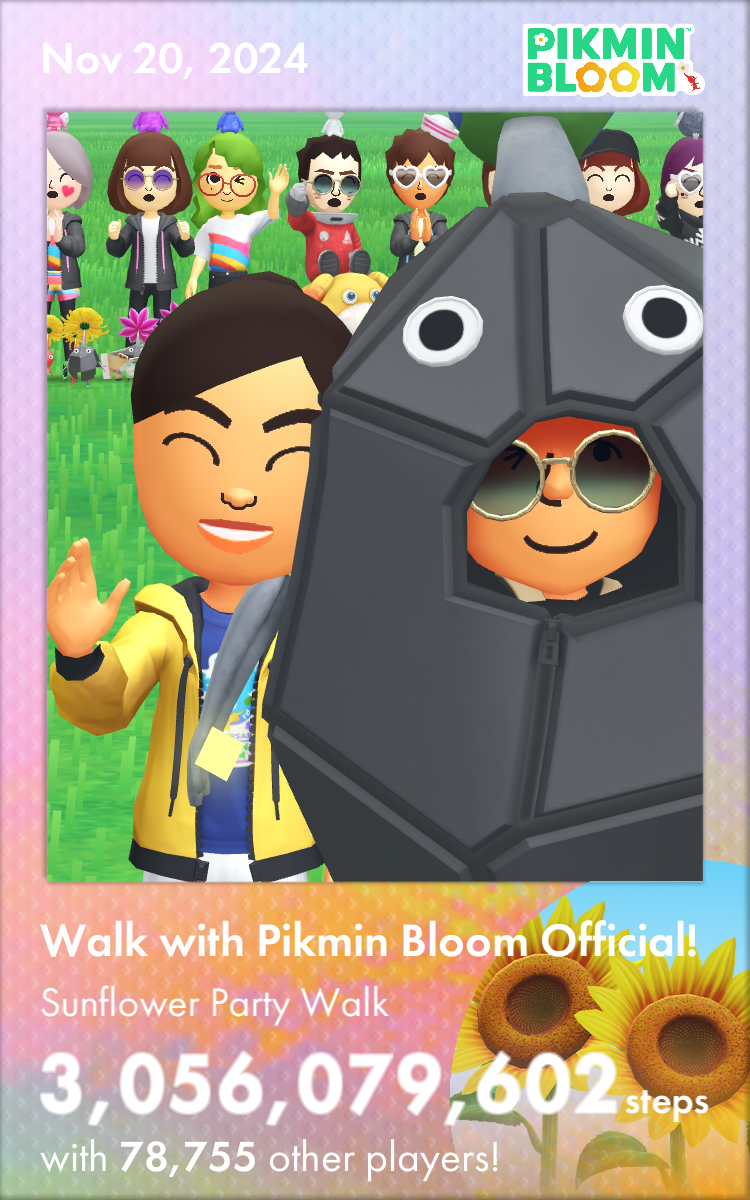 | Summary | A Memento Card from the Sunflower Party Walk in Pikmin Bloom. |