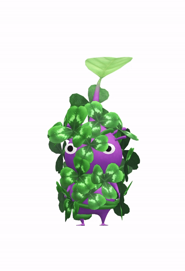 | Summary | An animation of a Purple Pikmin with a 3 leaf clover from Pikmin Bloom |