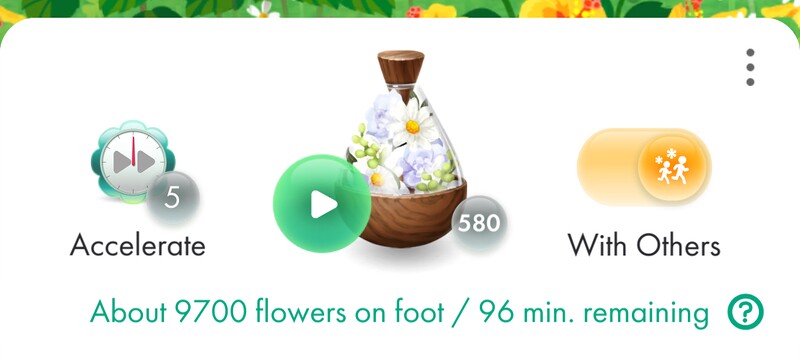 | Summary | A flower planting accelerator next to a bubble showing how many accelerators the player has in Pikmin Bloom. |