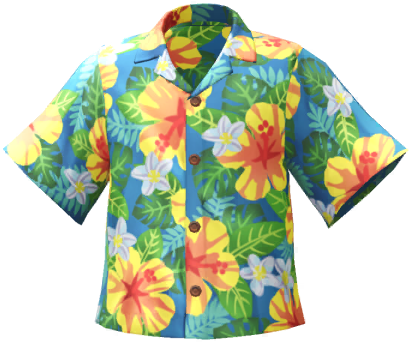 | Summary | "Hibiscus Hawaiian Shirt (Yellow)" Mii top part in Pikmin Bloom. |