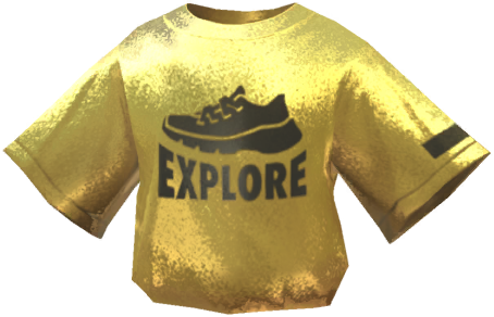 | Summary | "Explore printed T-shirt (Gold)" Mii top part in Pikmin Bloom. |