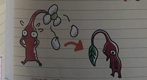 | Summary | Artwork of a Red Pikmin decreasing to the leaf stage from PIKMIN 2 Nekosogi Otakara Guide |