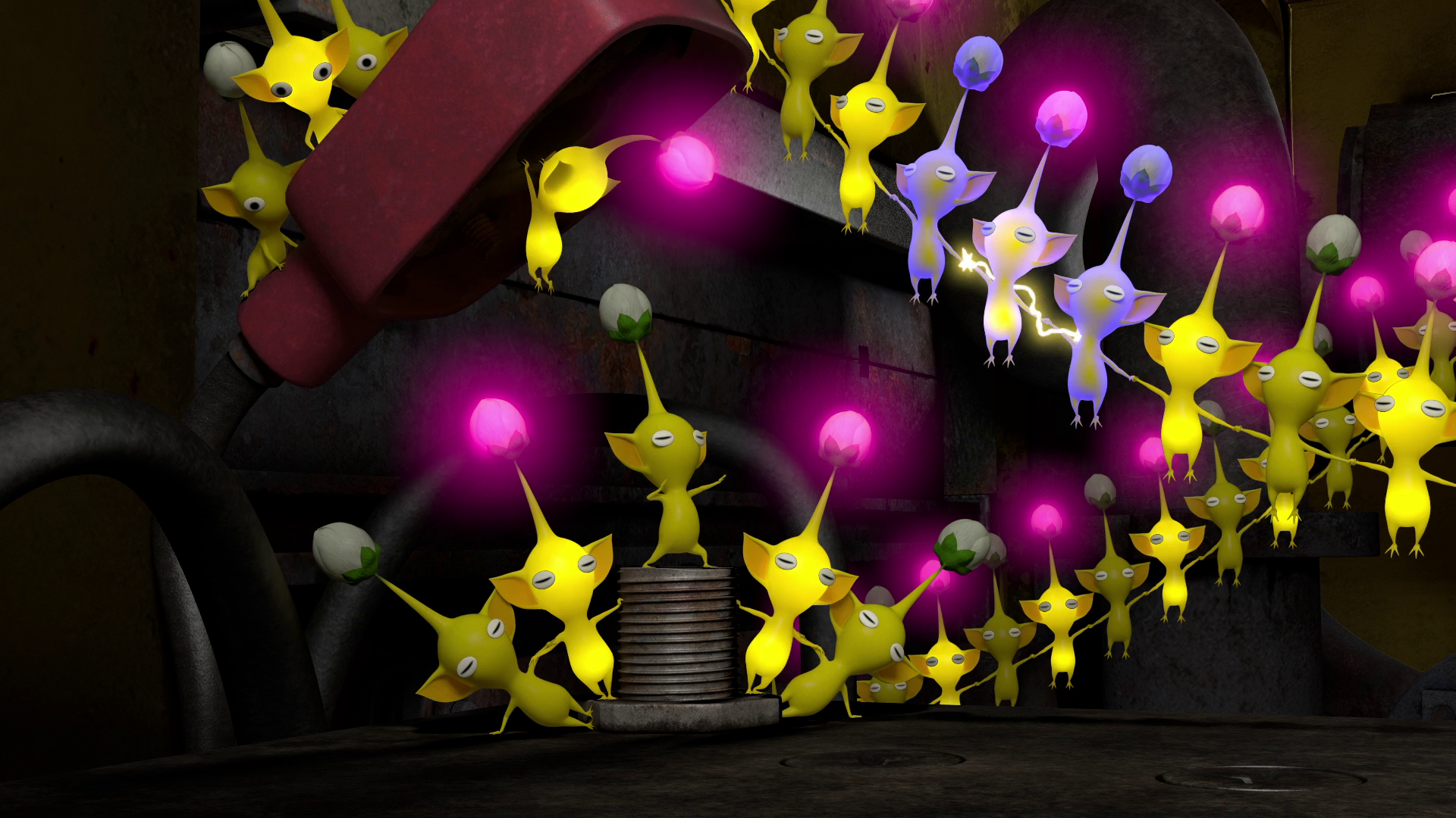 | Summary | A scene from Occupational Hazards, showing a chain of Yellow Pikmin with buds acting like light bulbs. |