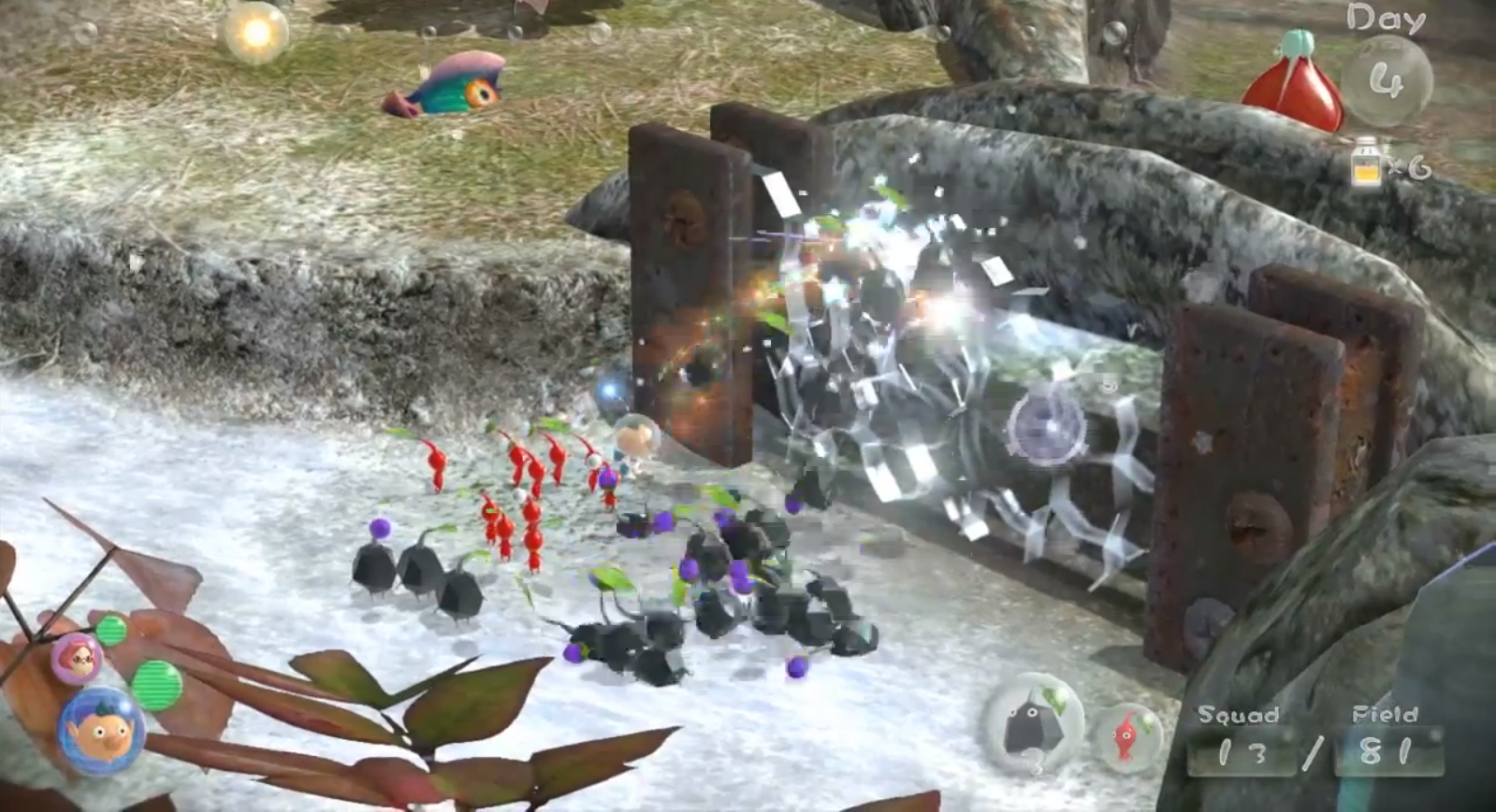Throwing Rock Pikmin at a glass gate.