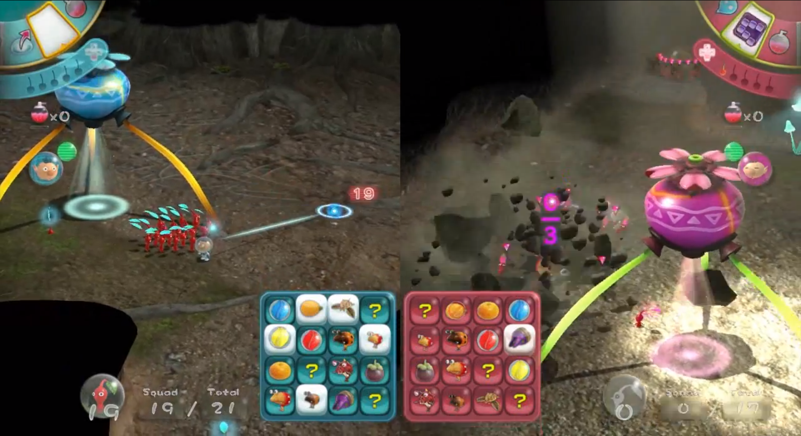 Using an falling rock item in Bingo Battle mode in Pikmin 3.