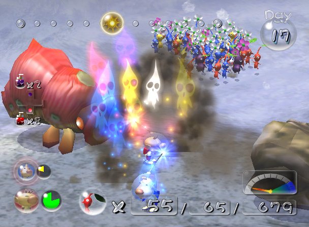 | current | 17:46, March 31, 2023 | 608 × 448 (65 KB) | KamekSans (talk | contribs) | {{file info |summary = A screenshot from a early version of {{p2}} showing several Pikmin getting crushed by a Decorated Cannon Beetle. |type = screenshot |game = p2 }} Category:Prerelease images Category:Pikmin 2 prerelease images Category:Captain Olimar images Category:Louie images Category:Red Pikmin images Category:Blue Pikmin images Category:Purple Pikmin images Category:Yellow Pikmin images [[Category... |