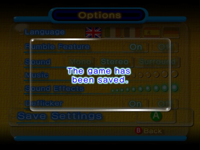 Pikmin 2 notifying that the game was saved, before leaving the options menu.