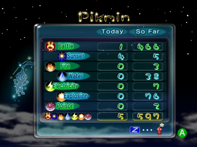| current | 09:39, July 8, 2014 | 640 × 480 (84 KB) | Espyo (talk | contribs) | Sunset menu in ''Pikmin 2''. Category:Pikmin 2 images Category:Menu images |