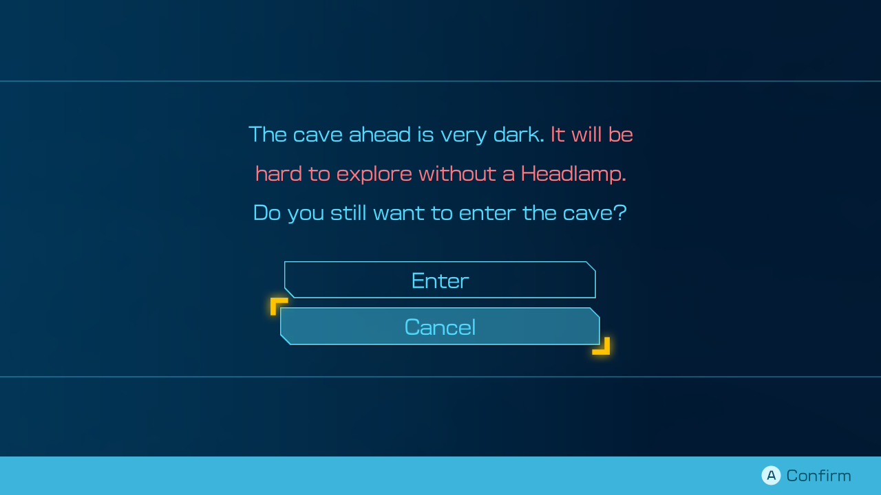 | current | 13:50, November 12, 2025 | 1,280 × 720 (198 KB) | Chazmatron (talk | contribs) | {{file info |summary = The no Headlamp cave menu. |type = screenshot |game = p4 }} Category:Menu images |