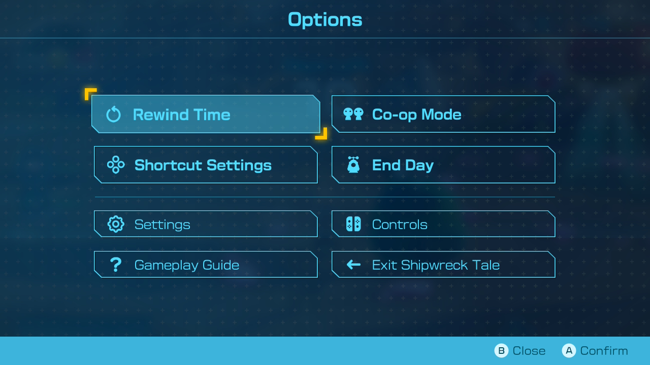| current | 15:10, November 7, 2025 | 1,280 × 720 (435 KB) | Chazmatron (talk | contribs) | {{file info |summary = The pause screen in Olimar's Shipwreck Tale. |type = screenshot |game = p4 }} Category:Menu images |