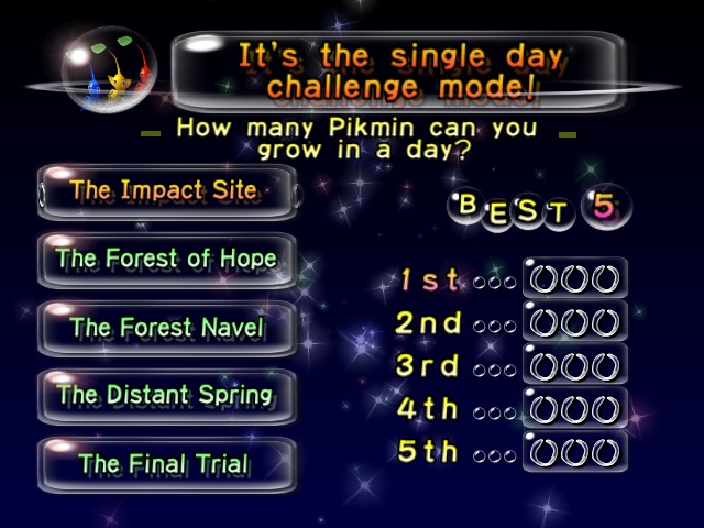 Challenge Mode menu in Pikmin.