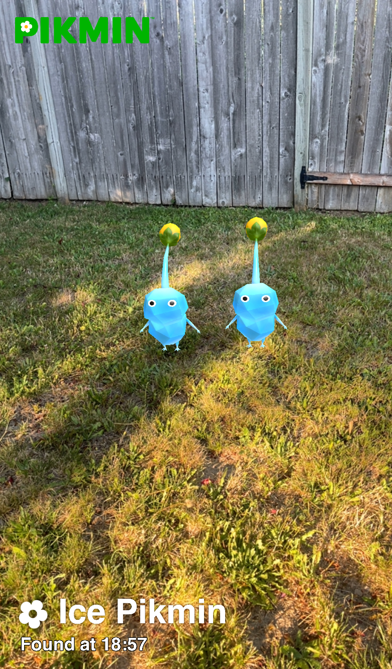 | Summary | Image of two Ice Pikmin in Pikmin Finder, taken with the websites camera feature. |