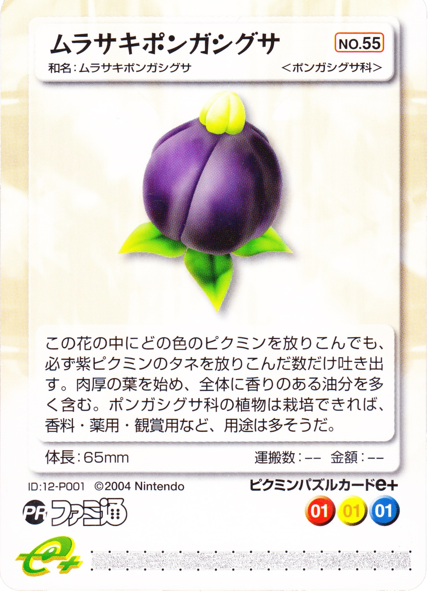 This is a Pikmin e-card. The information contained in this page is subject to copyright. All rights are reserved by Nintendo. We use it only in the belief that the information is designed to be an accompaniment to playing the game, and its use here will not: