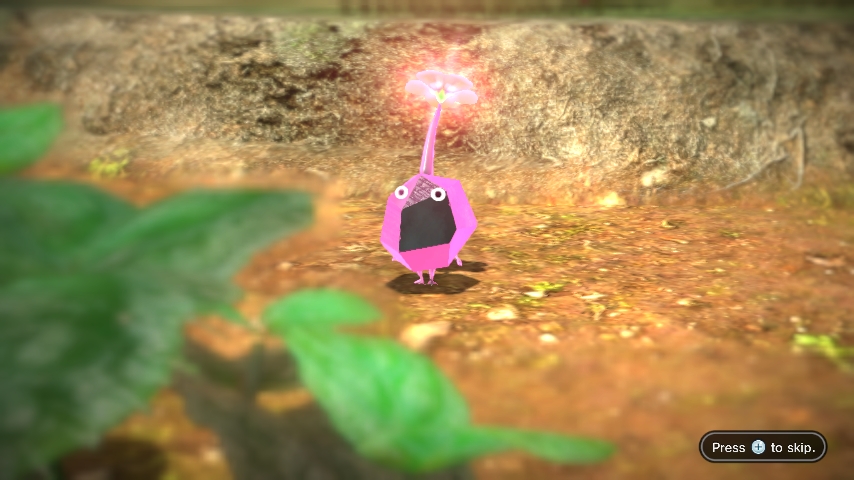 A Rock Pikmin in the ultra-spicy spray cutscene.