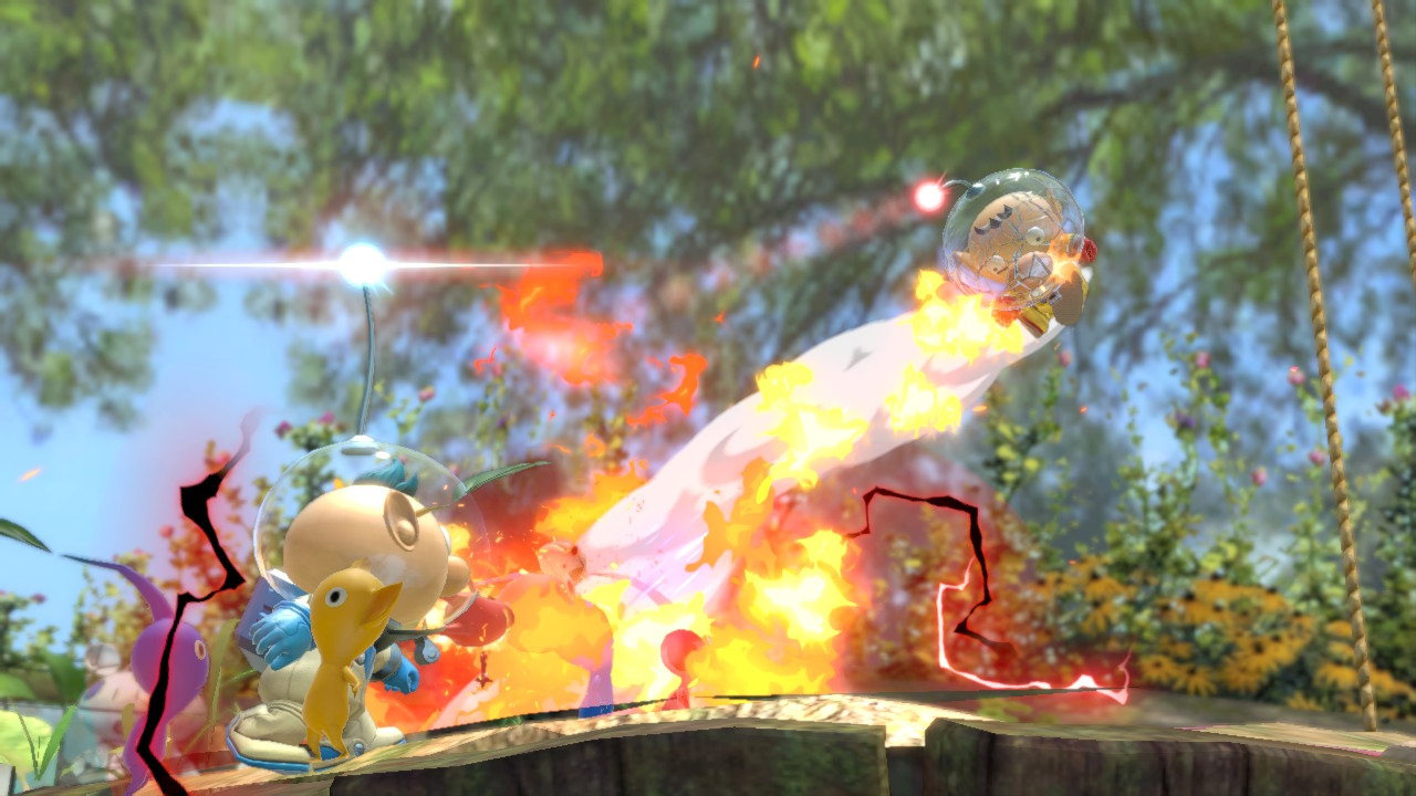 | Summary | A screenshot from Super Smash Bros. Ultimate, showing Alph launching Olimar on the Garden of Hope stage. |