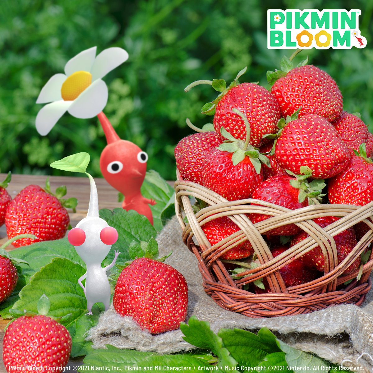 | Summary | Promotional image for the 2024 Spring Sticker Decor Pikmin event. It features a Red and White Pikmin next to a basket of strawberries. |