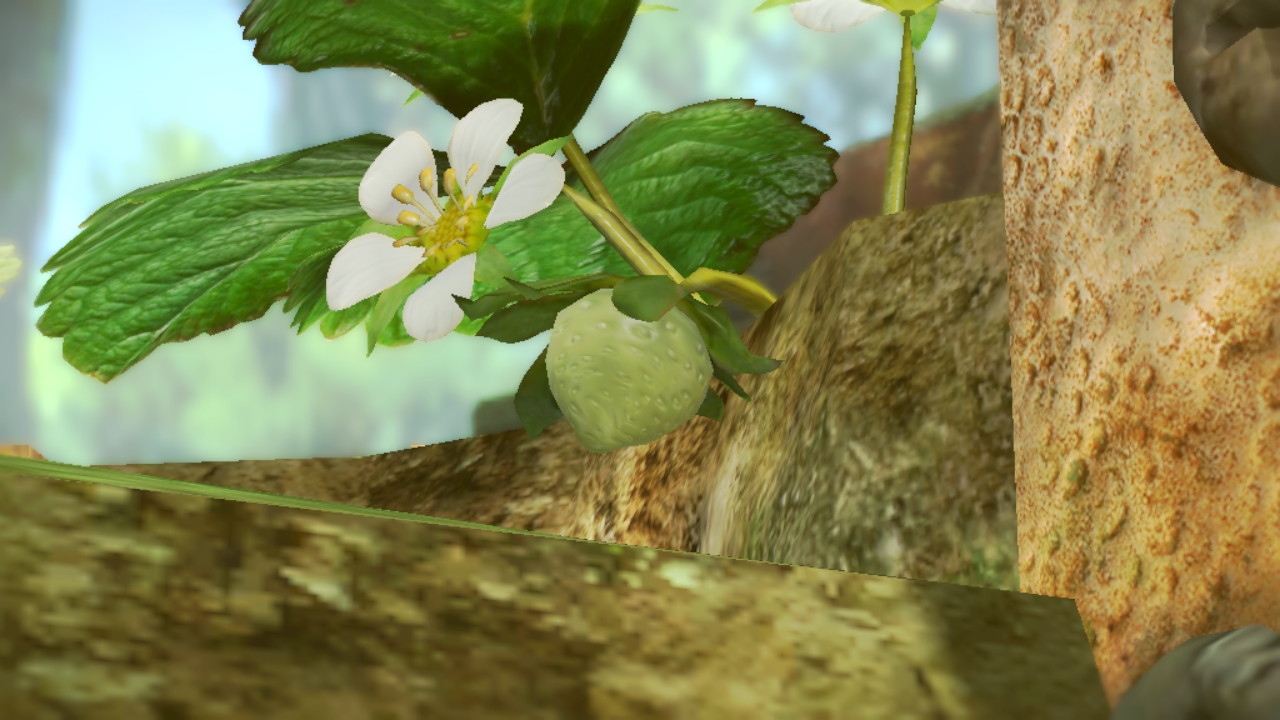 | Summary | In the Garden of Hope, next to the first fruit seen by the player (a Sunseed Berry), there is another fruit on a branch to the right. It's a tiny unripe strawberry, and across the many days of Pikmin 3, it never grows. |