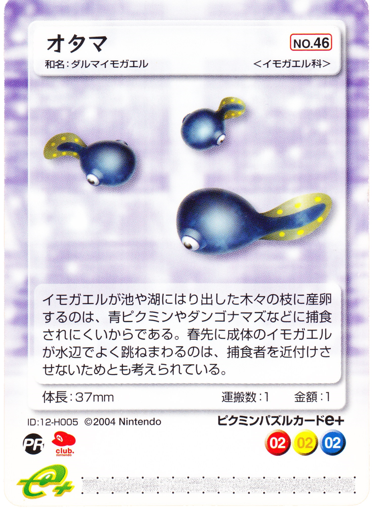 This is a Pikmin e-card. The information contained in this page is subject to copyright. All rights are reserved by Nintendo. We use it only in the belief that the information is designed to be an accompaniment to playing the game, and its use here will not: