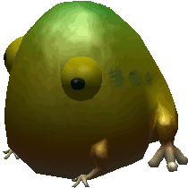 Animation alternating between the Yellow Wollywog and the Wollywog in the exact same position, so that the differences and similarities between the two models become apparent. This was taken using the animation viewer in Pikmin. The models aren't this similar in Pikmin 2.
