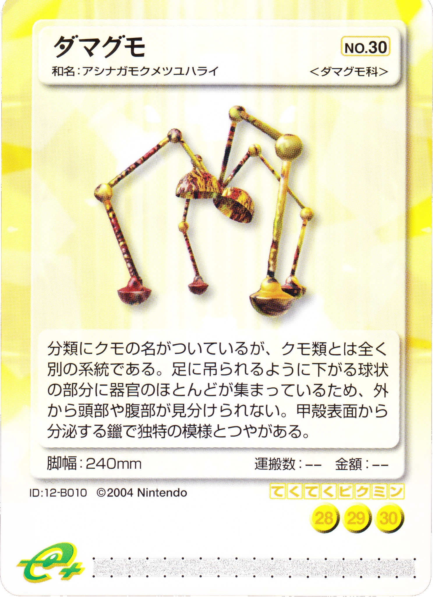This is a Pikmin e-card. The information contained in this page is subject to copyright. All rights are reserved by Nintendo. We use it only in the belief that the information is designed to be an accompaniment to playing the game, and its use here will not:
