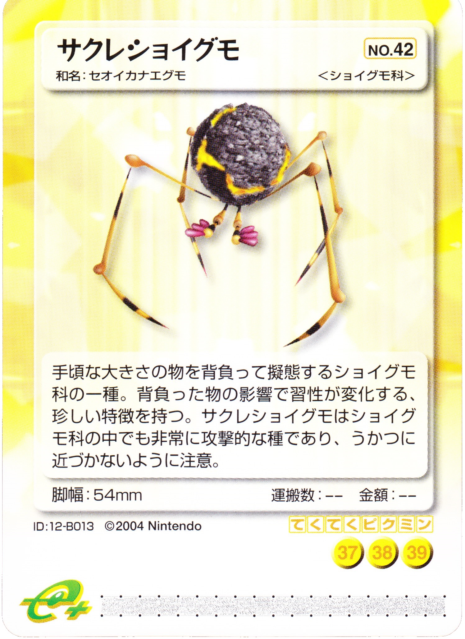 This is a Pikmin e-card. The information contained in this page is subject to copyright. All rights are reserved by Nintendo. We use it only in the belief that the information is designed to be an accompaniment to playing the game, and its use here will not: