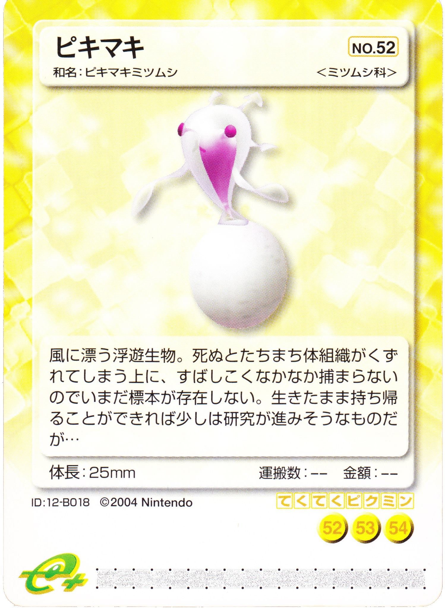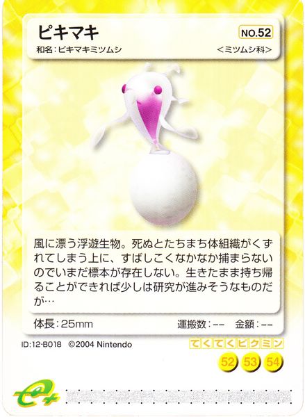 This is a Pikmin e-card. The information contained in this page is subject to copyright. All rights are reserved by Nintendo. We use it only in the belief that the information is designed to be an accompaniment to playing the game, and its use here will not: