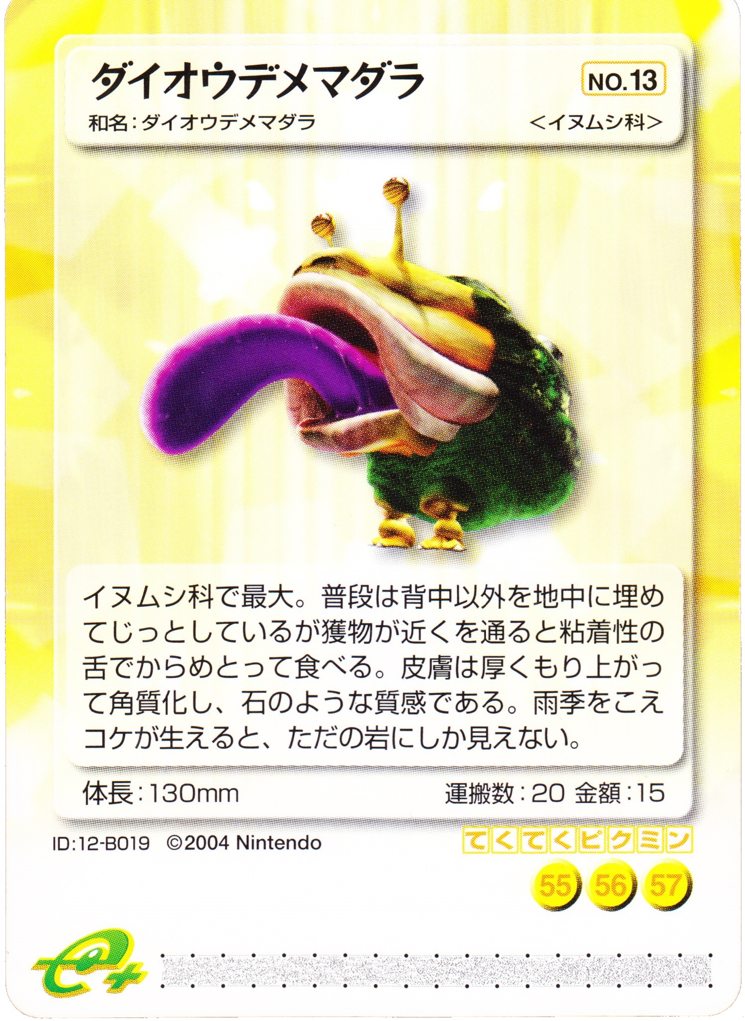 This is a Pikmin e-card. The information contained in this page is subject to copyright. All rights are reserved by Nintendo. We use it only in the belief that the information is designed to be an accompaniment to playing the game, and its use here will not: