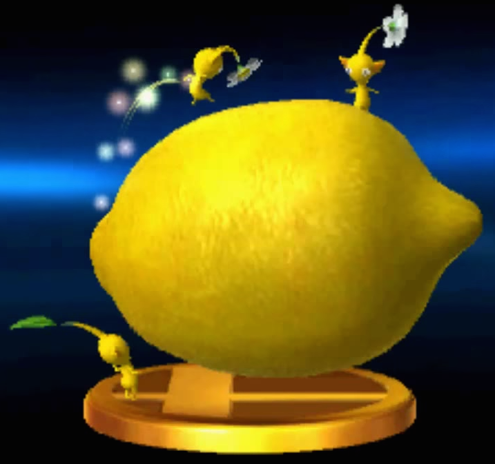 | Summary | The trophy for Yellow Pikmin in Super Smash Bros. for Nintendo 3DS and Wii U, showing 3 Pikmin around a Face Wrinkler. |